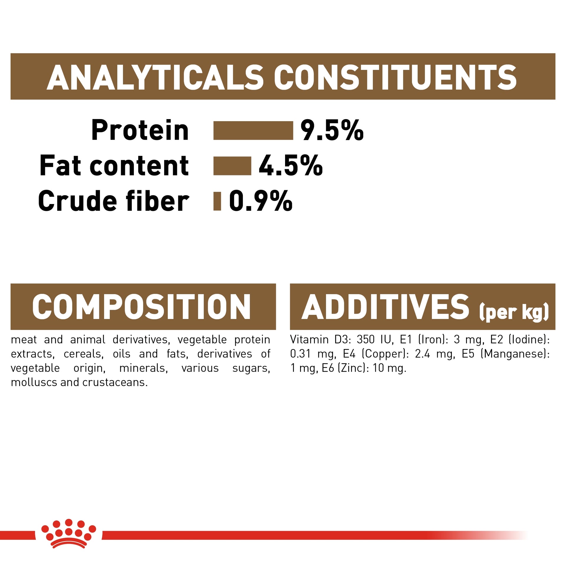 To ensure that your senior cat (aged 12+) receives the specific nutrition it needs to help maintain optimal health, you will need to feed it a diet that it will consume readily and instinctively. Thats why ROYAL CANIN® Ageing 12+ in Jelly is formulated to match the optimal Macro Nutritional Profile that is instinctively preferred by ageing cats like yours. ROYAL CANIN® Ageing 12+ in Jelly also provides senior cats with specially formulated food to help maintain healthy joints through a high level of Omega-3 fatty acids – specifically EPA and DHA. Furthermore, ROYAL CANIN® Ageing 12+ in Jelly also contains an adapted phosphorus content to help support healthy kidney function and overall renal health. To cater to each cats individual preferences, ROYAL CANIN® Ageing 12+ is also available in a delicious gravy, or as dry food with tasty and crunchy kibble. If youre considering mixed feeding, simply follow our feeding guidelines to ensure your cat gets an accurate amount of both wet and dry food for optimal benefit.