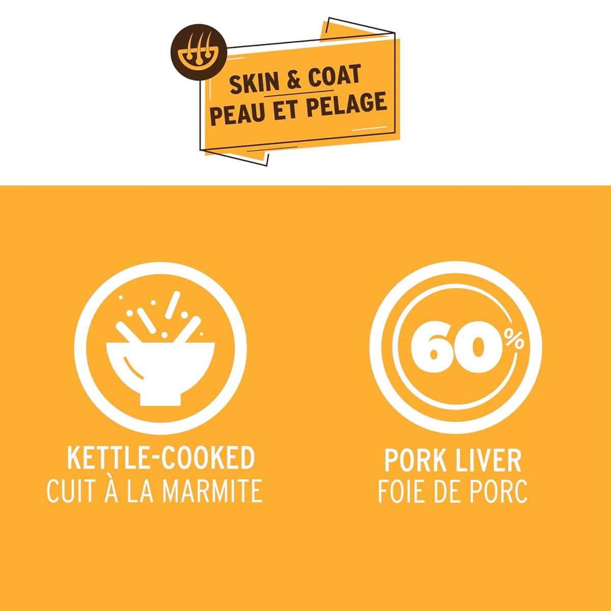Made primarily with pork liver, these treats do not have any harmful grains. They are kettle-cooked in small batches. Enhanced with fish oils, which supports skin and coat health. Feature a soft, palatable texture. These high protein, low fat treats are a healthy way to reward dogs of all breeds, sizes, and ages.