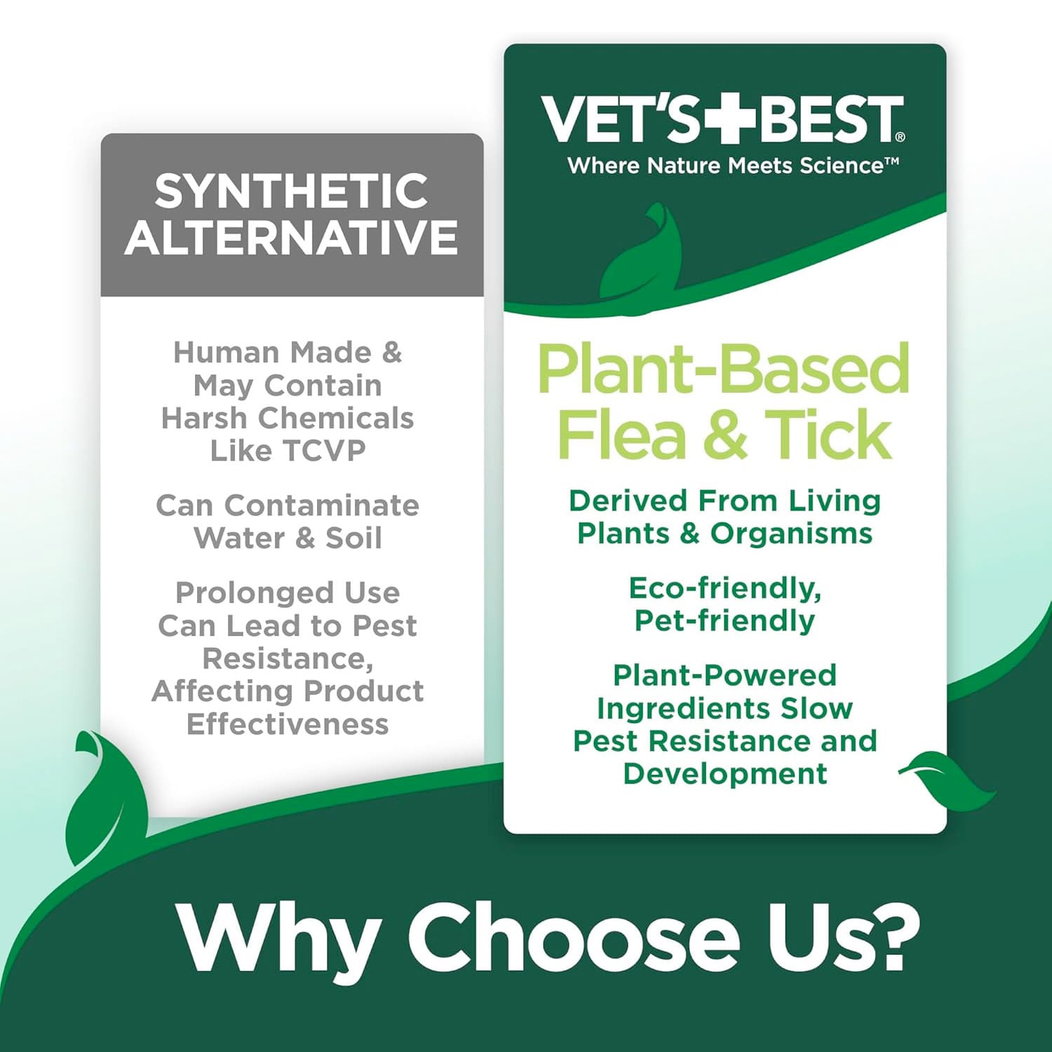 This carefully crafted formula is designed to kill fleas, ticks, and mosquitoes as well as spiders, ants and bed bugs while maintaining safety for pets, family members, and your home when used as instructed. For over 30 years, Vet’s Best has blended premium quality and plant-based ingredients that work together to comfort and protect your pet.