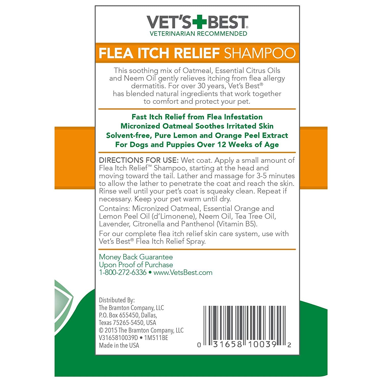 Vet's Best Flea Itch Relief Shampoo provides immediate relief for dogs itching due to flea bites. This flea shampoo uses a unique formulation of natural ingredients like orange peel extract, lemon peel extract, and micronized oaeal. Those ingredients work together to gently calm, soothe and moisturize red, raw, and irritated skin from those little pests!