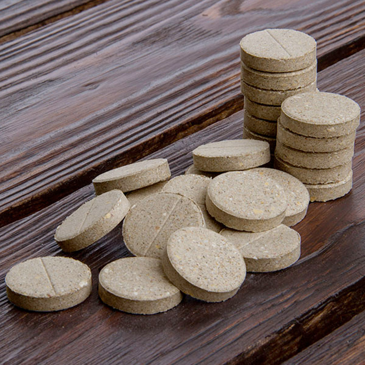 Nutritional additives Vit. A 180.000 IE ? Vit. D3 12.600 IE ? Vit. E / all rac-alpha-tocopherylacetate 1.080 mg ? Vitamin C as sodium calcium ascorbyl phosphate 15.750 mg ? copper as copper (II)-sulphate, pentahydrate 108 mg ? iodine as calcium iodate, waterfree 16,2 mg ? iron as iron (II)-sulphate, monohydrat 900 mg ? zinc as zinc oxide 1.080 mg ? manganese as manganese (II)-oxide 720 mg ? selenite as sodium selenite 3,24 mgAdditives per tablet