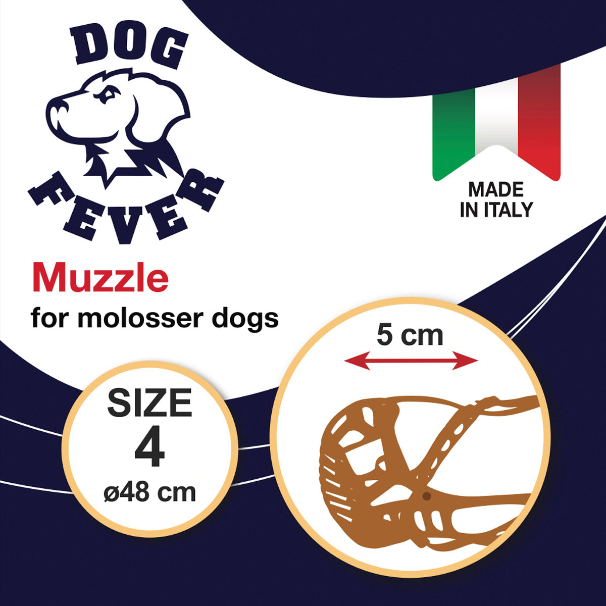 Dog Fever Molossian Muzzle with Leather Strap - Size 4, Brown