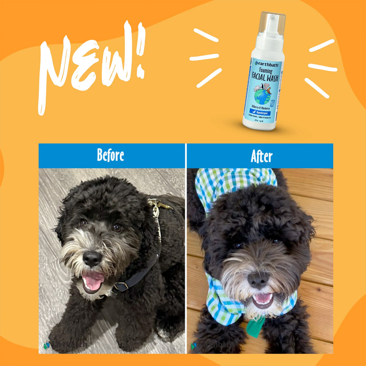 This ultra-mild, hypoallergenic and tear-free foaming facial wash harnesses the power of berries to naturally clean and brighten your pet's face while removing any tear stains. Bilberries and blueberries are rich in omega-3 fatty acids and prized for their strong antioxidant and soothing properties. Great for pets with skin sentitivities, allergies, tear stains, and facial folds. Safe for pets over 6 weeks old and compatible with all coat colors.