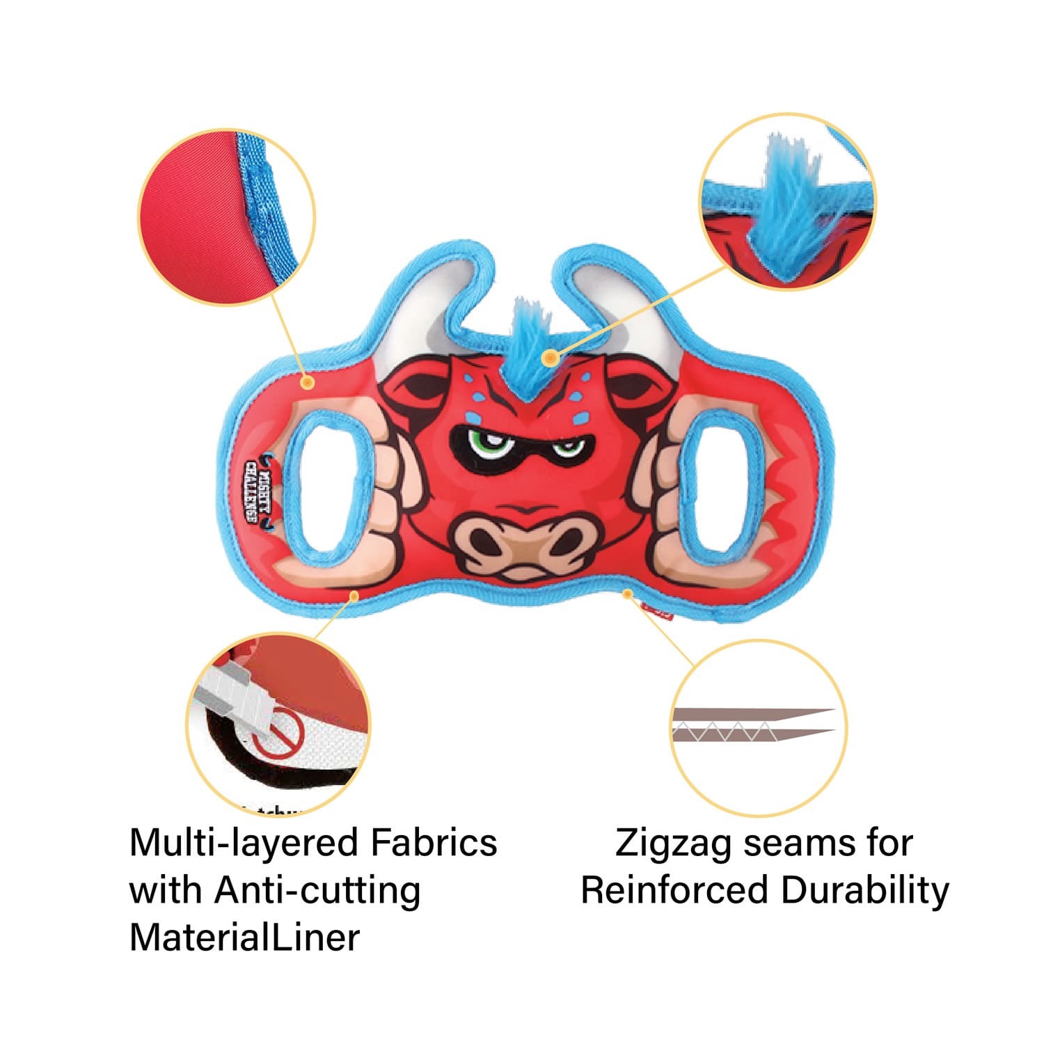 Size : 34.2 x 19.0 x 6.9cm | 13.5 x 7.5 x 2.7inch Anti-Cutting and Reinforced Materials: This dog toy is constructed with anti-cutting fabrics and reinforced industrial-grade webbing materials, ensuring its durability and longevity. It is designed to withstand the strong tugging and pulling forces during play. Double Handles for Interactive Play: With two handles on both sides of the toy, it allows for a fun and engaging tug-of-war game between two dogs or between you and your furry friend. The handles provide a comfortable grip for both you and your dogs, making the playtime even more exciting and interactive. Squeaker for Added Stimulation: Inside the toy, there is a built-in squeaker that emits an enticing sound when squeezed. It adds an extra layer of stimulation and entertainment, keeping your dogs engaged and entertained during play. Versatile Play Options: The double handle design allows for various play options. You can engage in a tug-of-war game, a game of fetch by using the handles to throw the toy, or simply let your dogs enjoy independent playtime with the toy. It promotes physical exercise and interactive play between dogs and humans. Promotes Bonding and Physical Fitness: Playing with this toy not only offers a great bonding experience between you and your dogs but also promotes their physical fitness. The tug-of-war game strengthens their jaw muscles, builds endurance, and provides mental stimulation. [video width="720" height="960" mp4="https://naturallyforpets.com/wp-content/uploads/2024/12/MIGHTY-CHALLENGE.mp4"][/video]