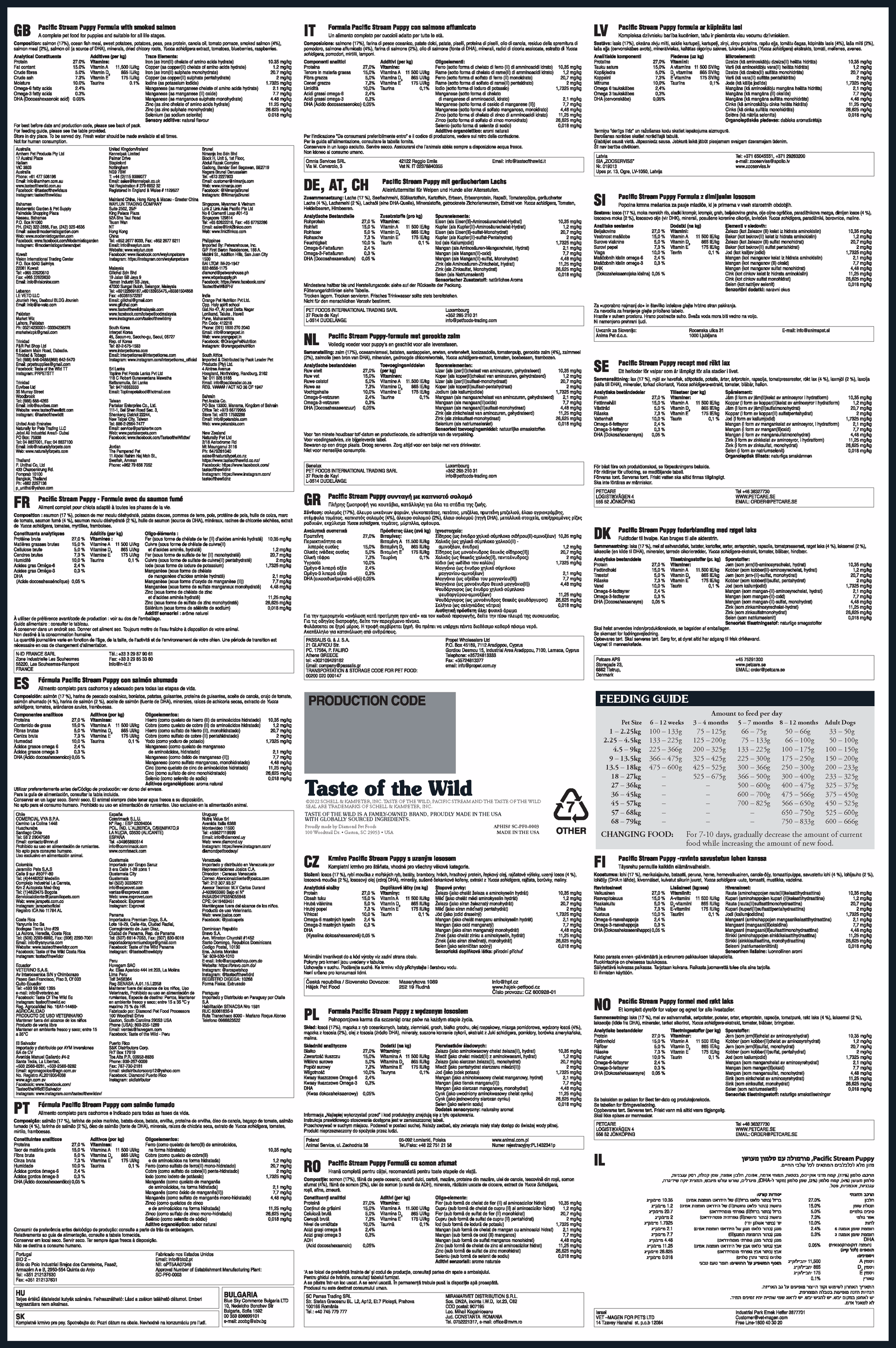 Taste of the Wild Pacific Stream Puppy Recipe is formulated to meet the nutritional levels established by the AAFCO Dog Food Nutrient Profiles for All Life Stages including growth of large size dogs (70 lbs. or more as an adult).Additional Information