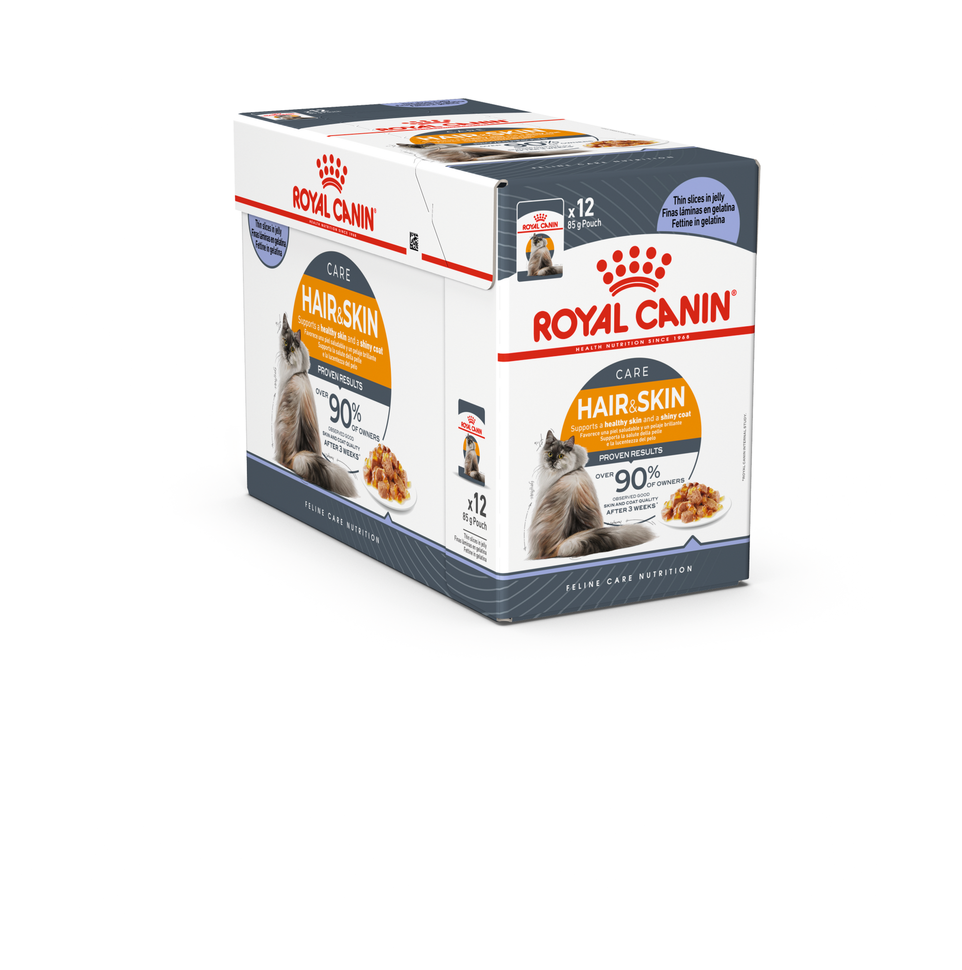 Royal Canin 12 x 85 gm Feline Care Nutrition Hair & Skin Jelly (Wet Food Pouches)