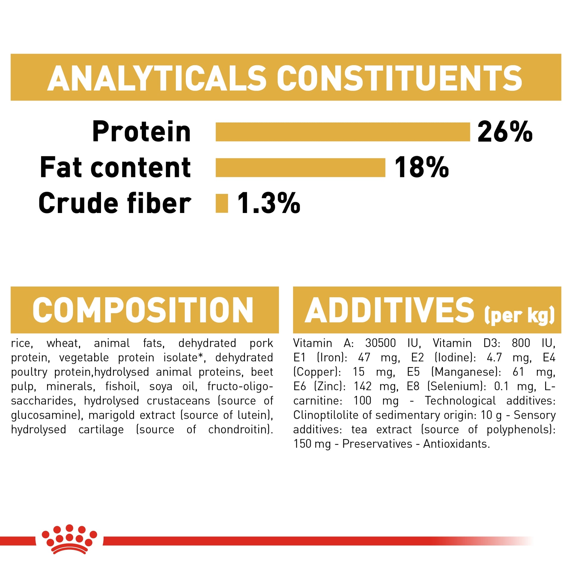 The French Bulldog is a small-sized breed with a lot of muscle, a compact structure and solid bones. These powerful dogs are typically alert, active, and intelligent. Suitable for French Bulldogs over 12 months old, ROYAL CANIN® French Bulldog Adult is specially formulated with all the nutritional needs of your adult dog in mind. To maintain its powerful muscles, the French Bulldog needs regular exercise. Shorter daily walks are better for bone and joint support than too much running or jumping. Nutrition is also essential for effectively maintaining muscle mass, thats why ROYAL CANIN® French Bulldog Adult contains L-Carnitine and an optimal protein content. ROYAL CANIN® French Bulldog Adult also contains specific nutrients, including a specific complex and EPA and DHA, to help maintain the health of your French Bulldogs skin and distinctive coat. Whats more, ROYAL CANIN® French Bulldog Adult contributes to maintaining optimal digestive health by helping to support a good balance of intestinal flora. This ultimately helps to reduce excessive flatulence and lessens the smell of its stool. Key Features/Benefits: Muscle mass condition Healthy skin Odour reduction