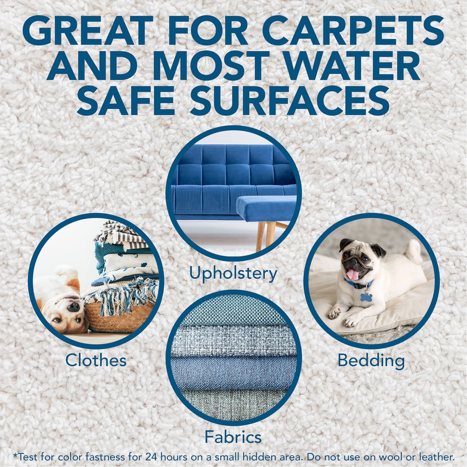 3x STAIN FIGHTING POWER- Lifts and removes tough pet stains and odors. Patented 3-in-1 trigger sprayer gives you more options to tackle stains and odor with stream, foam, or mist settings. Penetrates deep and fast to remove tough urine, blood, feces, and vomit stains. Works on carpets and most water safe surfaces such as upholstery, bedding, fabric and clothes. Approved by the Carpet & Rug Institute and safe to use aroundIngredients