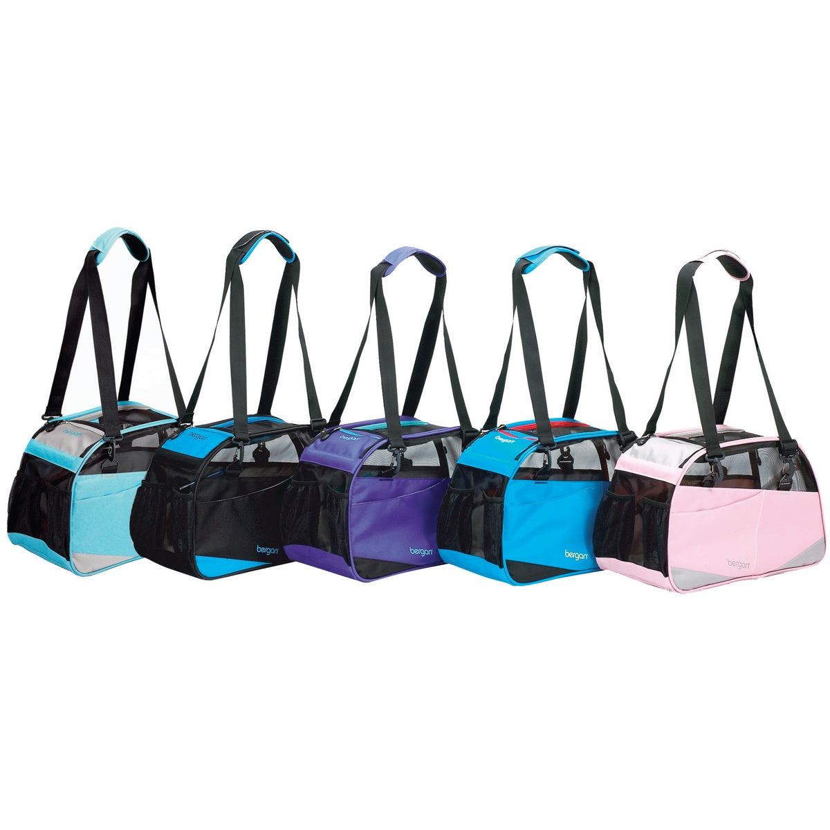 The Bergan Voyager Pet Carrier is a stylish travel must-have, featuring well ventilated sides, lockable zippered openings, convenient pockets, and seat belt loops for added safety. The padded shoulder strap will keep you comfortable while toting your furry family member. Comes in various colors. Sizes: Small - 10lbs or 4.5kg - L:30.5cm x W:20.3cm x H:43.2cm (12inch x 8inch x 17inch) Large - 22lbs or 22kg - L:33cm x W:25.40cm x H: 48.2cm (13inch x 10inch x 19inch) The Bergan Voyager Pet Carrier is a stylish travel must-have, featuring well ventilated sides, lockable zippered openings, convenient pockets, and seat belt loops for added safety. The padded shoulder strap will keep you comfortable while toting your furry family member. The patented Pet Connect feature also makes it easy to calm anxious pets without fully unzipping or setting down the carrier. The small zippered opening at the top allows you to quickly unzip and reach into the bag and access your pet without the risk of escape. The Bergan Voyager Pet Carrier is compliant with most airlines. Exclusive features include: Poo Bag holder/dispenser Redefined pockets for toys, water or treats No Escape locking zippers Airline compatible Superior ventilation Washable fleece travel bed Seat-Belt Loop secures the carrier in the car